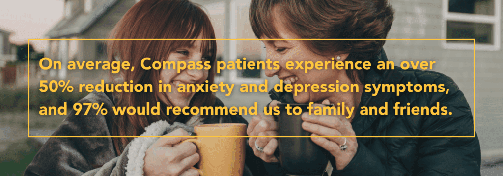 Compass Health Center’s multidisciplinary treatment team includes more than 55 psychiatrists and psychiatric nurse practitioners, along with over 550 master-level clinicians—totaling more than 800 staff. Compass treats a wide range of conditions, including mood and anxiety disorders, trauma, OCD, co-occurring mental health and substance use, school refusal, chronic pain and illness, and more.